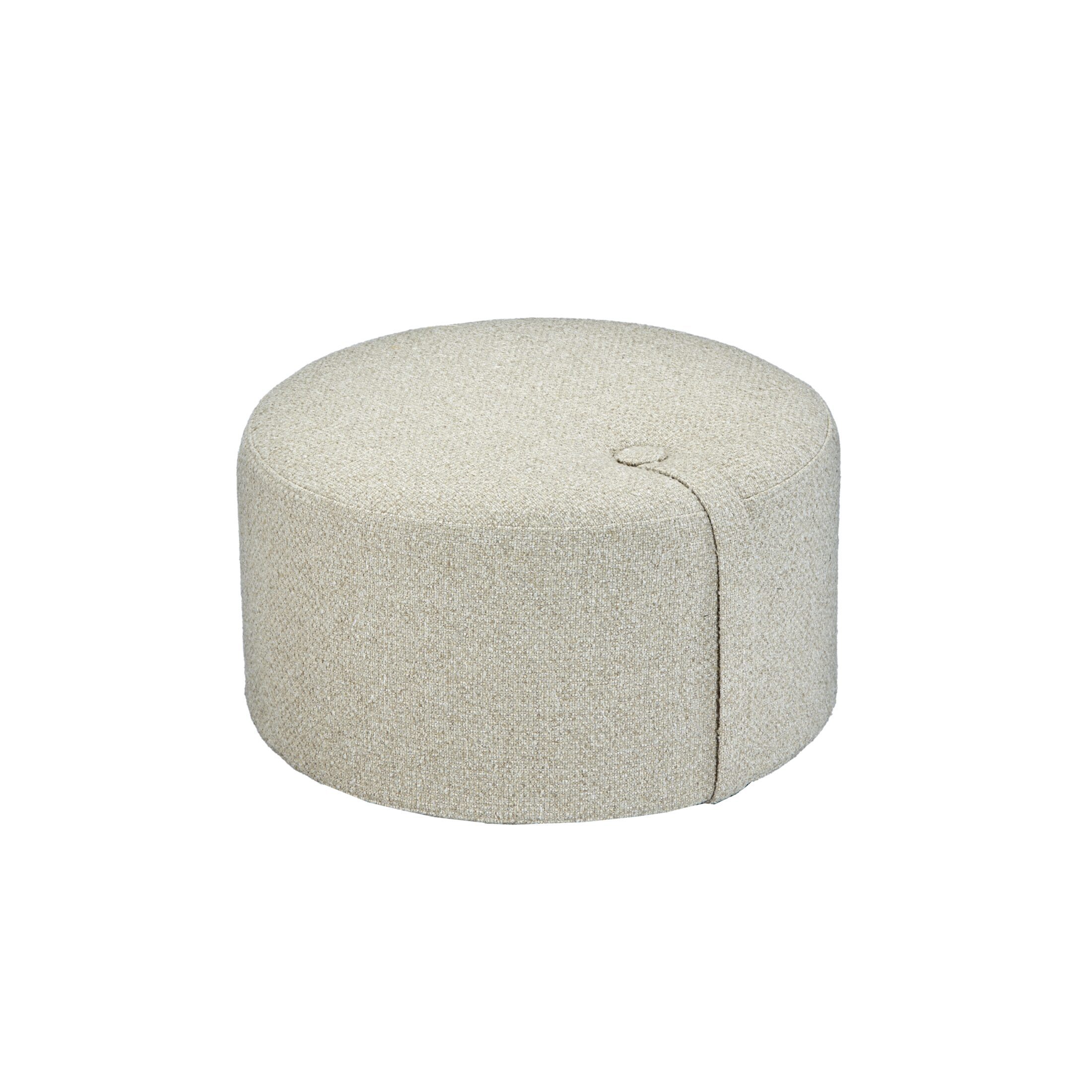 Formschöner Pouf von DesignBite, inspiriert von dänischem Design – gefertigt aus recycelten Materialien wie FSC-Holz, Teppichfüllung von EGE Carpets und Stoffen von Fabra. Nachhaltig, modern und vielseitig einsetzbar